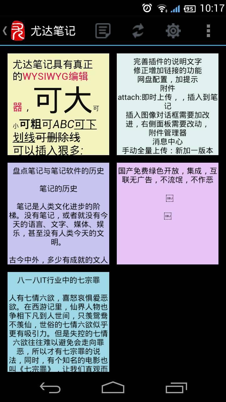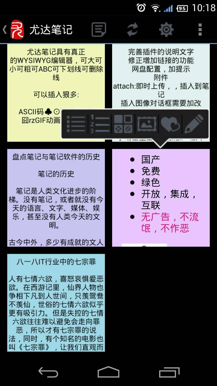 YodaNote est un logiciel de prise de notes, exécuté sur Android, Windows, Linux et Mac OS, il fournit une réelle modification WYSIWYG pour Android en fonction de HTML et JavaScript, de style CardView et d'édition sur place.